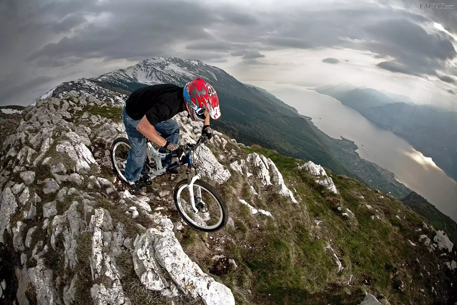 Rowerzysta, Góry, Rzeka - faceci.biz